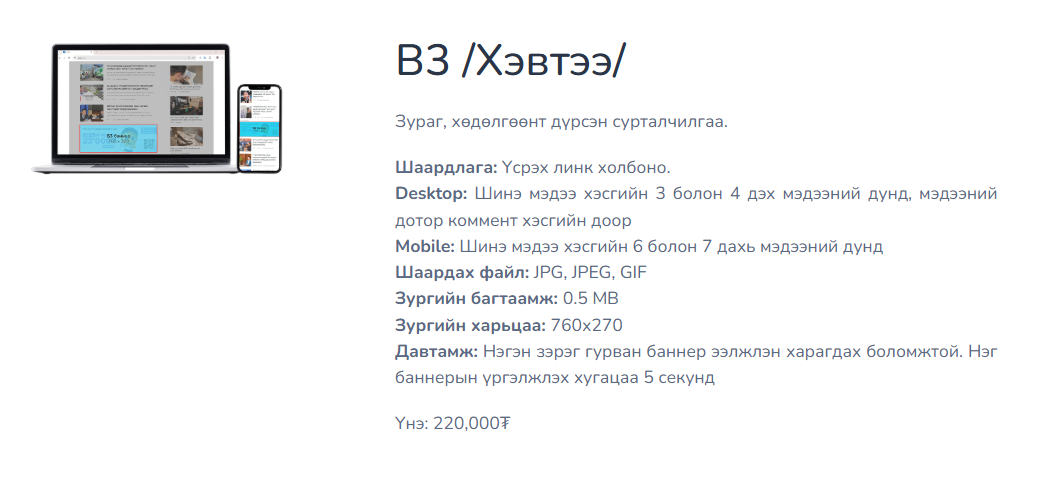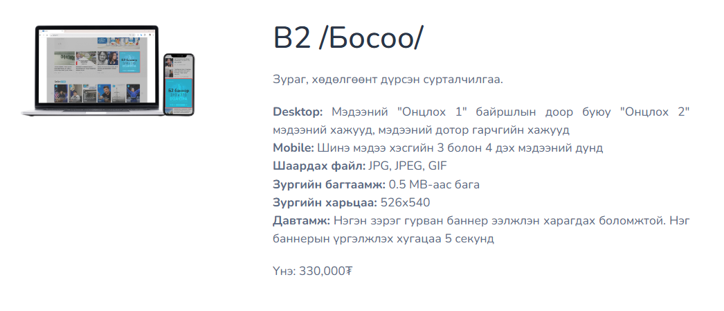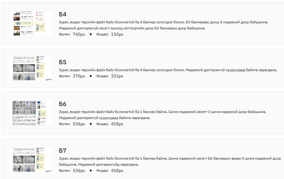 - Баннерт байршуулах зураг, видео заасан хэмжээний дагуу байх