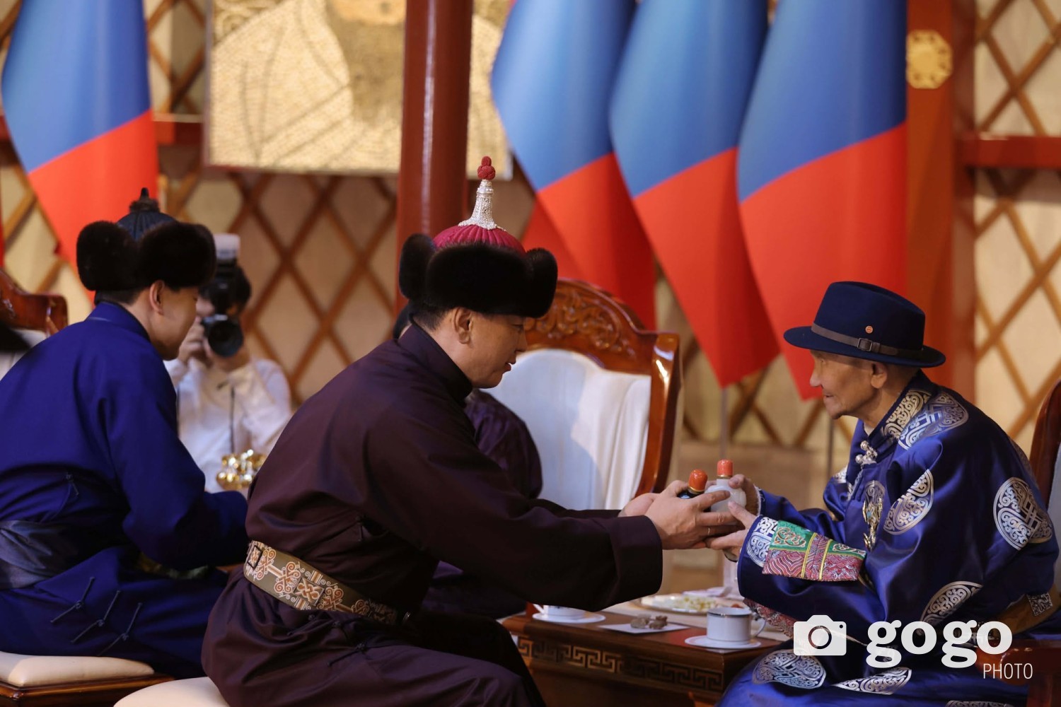 • Ерөнхийлөгч, УИХ-ын дарга, Ерөнхий сайд нар ахмадын төлөөлөлтэй золгож байна