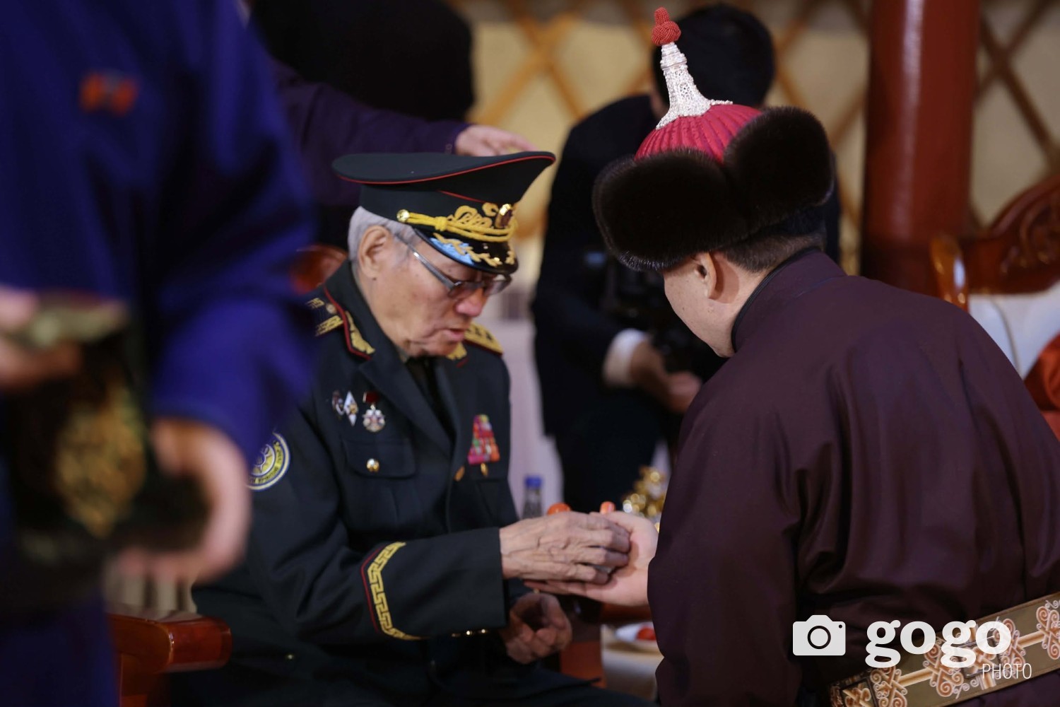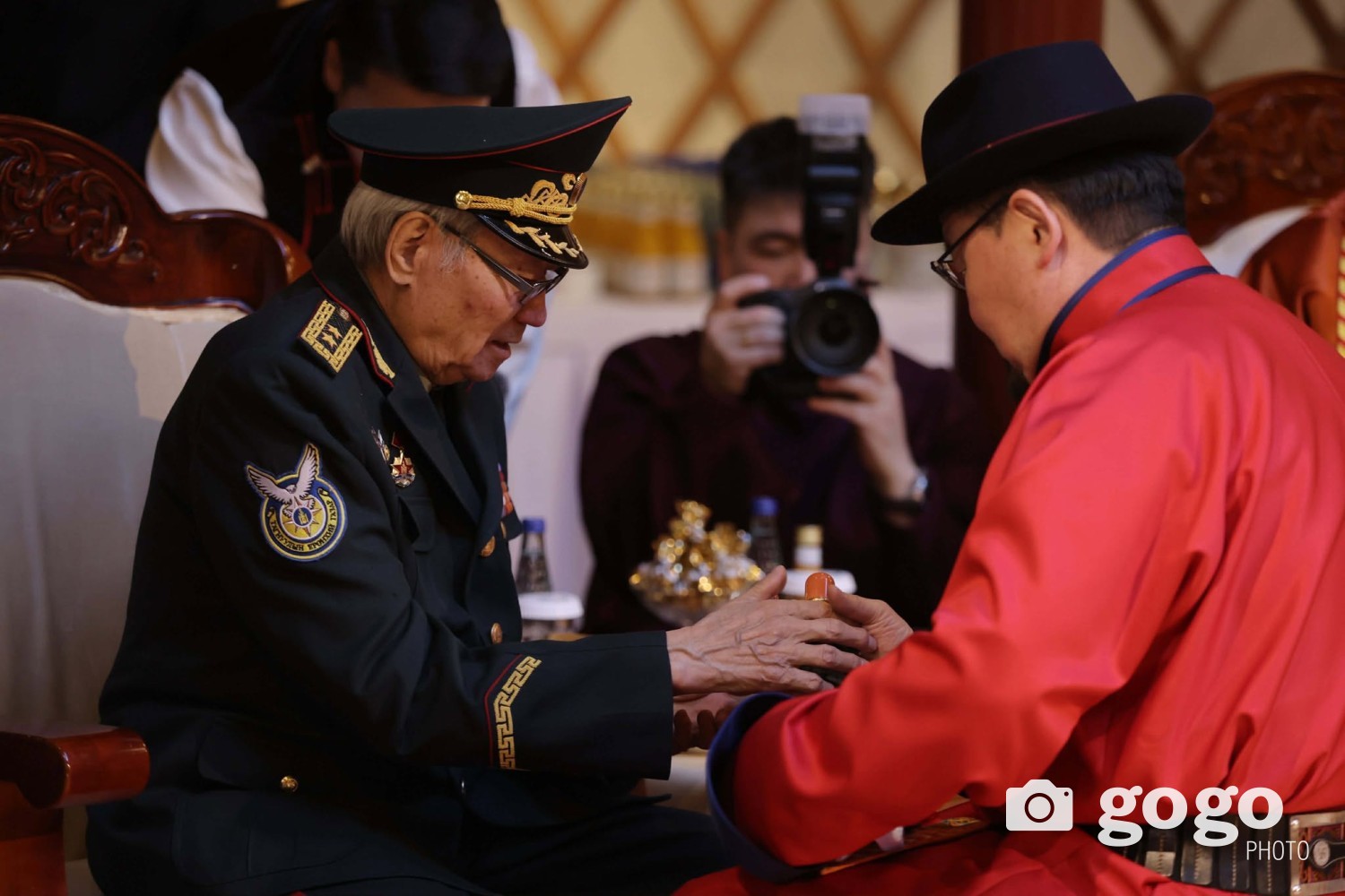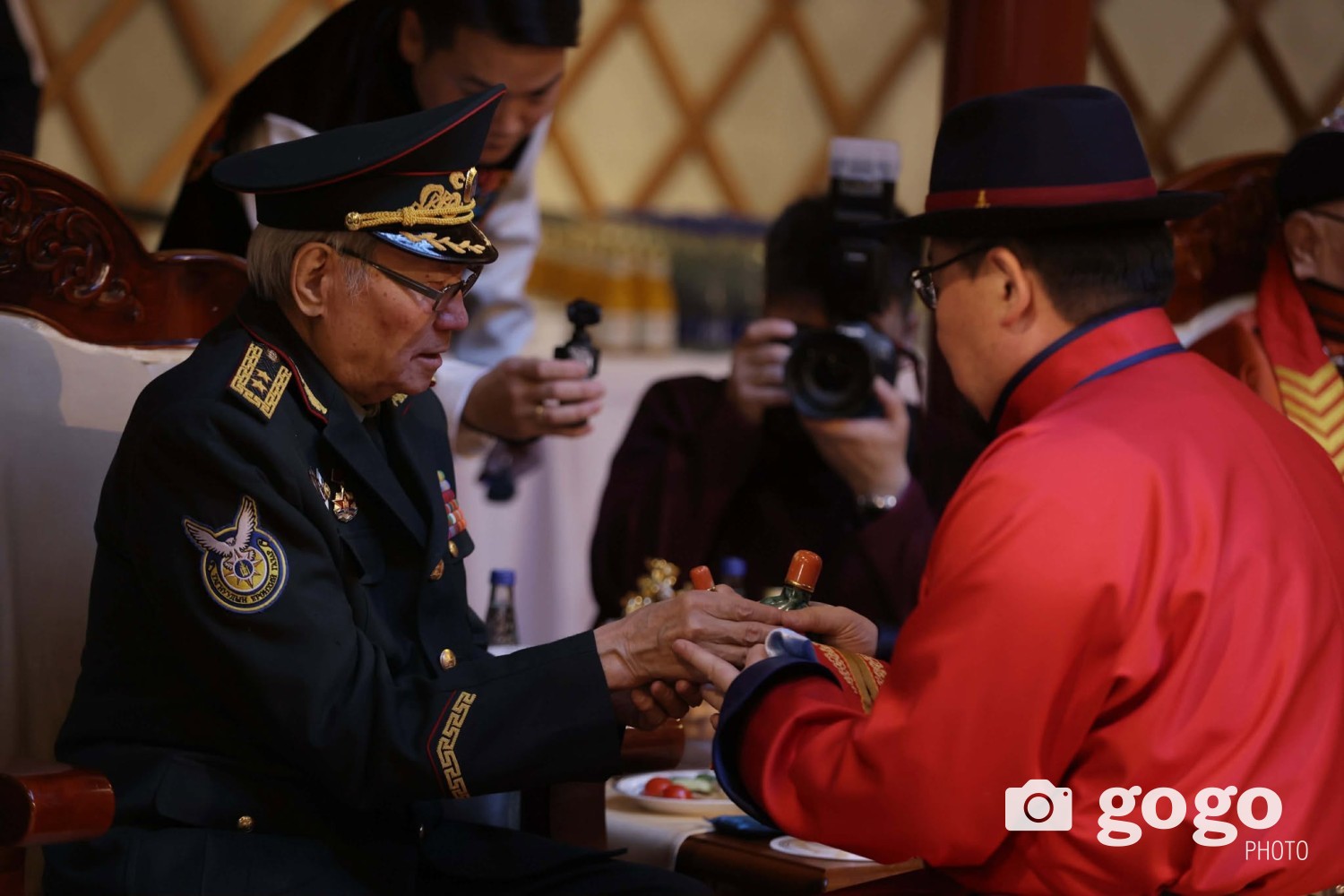 Ерөнхийлөгч У.Хүрэлсүх, Улсын Их Хурлын дарга Н.Учрал, Ерөнхий сайд Г.Занданшатар нар ахмадуудад золгож, хүндэтгэл үзүүллээ.