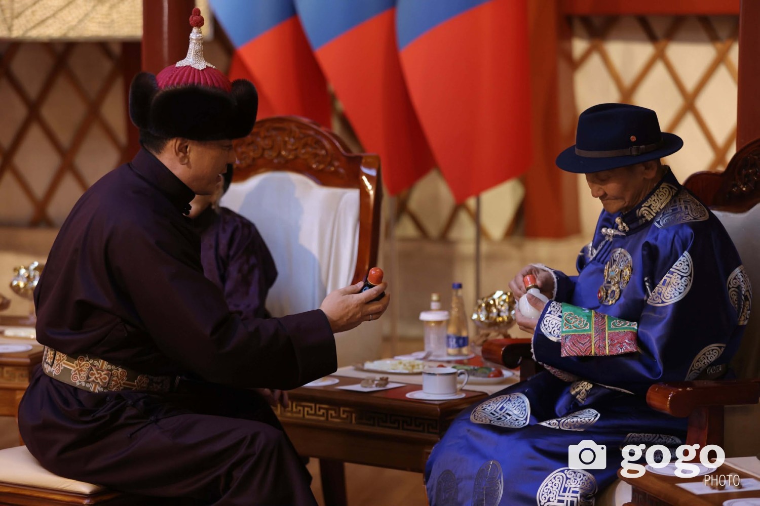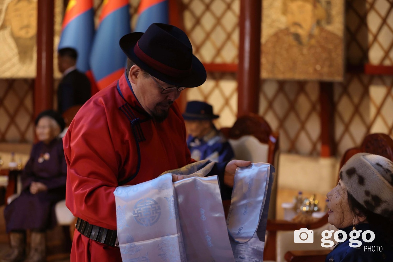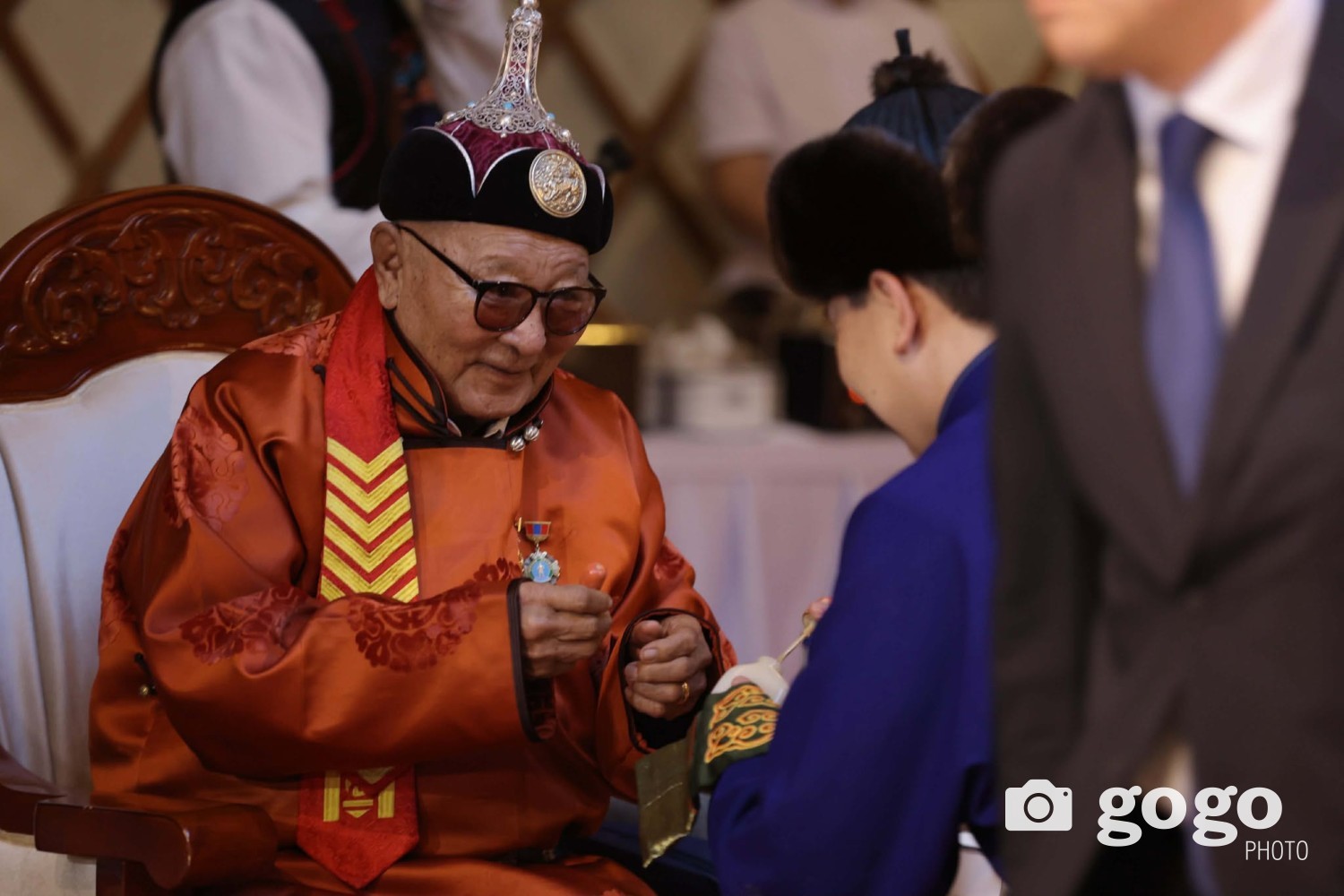 Ерөнхийлөгч У.Хүрэлсүх, Улсын Их Хурлын дарга Н.Учрал, Ерөнхий сайд Г.Занданшатар нар ахмадуудад золгож, хүндэтгэл үзүүллээ.