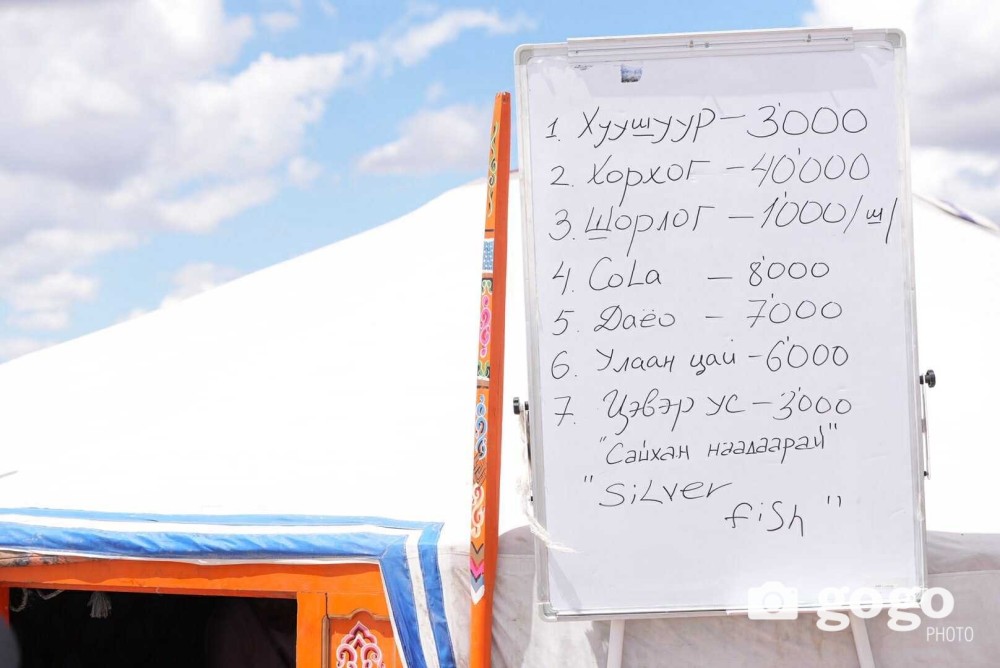 Наадамчин олны цугладаг Хүй долоон худагт хуушуур, айраг тэргүүтэй идээ ундны үнэ дараах үнийн дүнтэй байна.