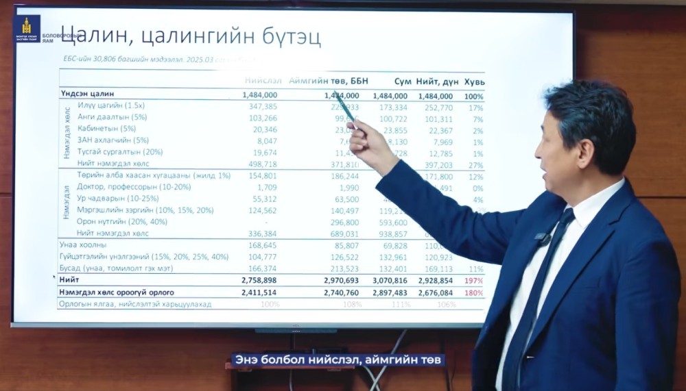 Багшийн үндсэн цалиан 1,4 сая төгрөг ба илүү цаг, анги даалт, кабинетын, заах аргын ахлагч, тусгай сургалтын зэрэг нэмэгдэл хөлс буюу 500 орчим мянган төгрөг авах боломжтой гэв. Мөн үүн дээр төрийн алба хаасан хугацааны, доктор профессорын, ур чадварын, мэргэшлийн зэргийн, орон нутгийн зэрэг 336 мянган төгрөг нэмэгдэх болно. Эдгээр нь 2025 оны 6 дугаар сарын 30 мянга гаруй багшийн цалин дээр хийсэн тооцоолол гэв.