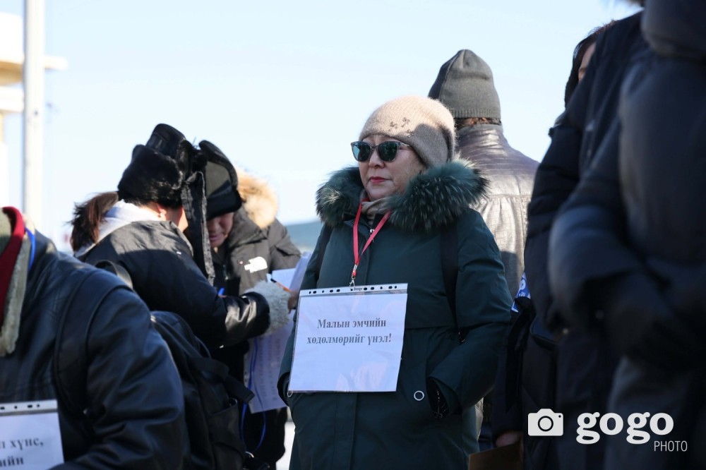 Одоо мал эмнэлгийн салбарыг бодлогоор дэмжихгүй бол элгээрээ хэвтлээ. Мөн 2025 оны үйлчилгээний хөлсөө аваагүй байна, тиймээс өнөөдөр жагсаж байгаа юм.