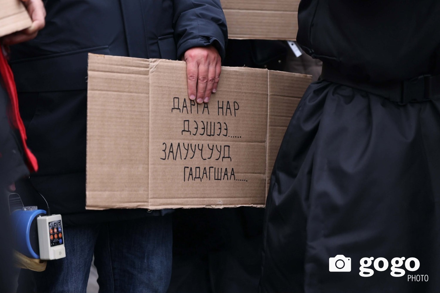 Иргэд бензин шатахуун, цалин, татварын асуудлаар Төрийн ордны зүүн хаалганы гадна жагсаж, УИХ дахь бүлгүүдэд шаардлага хүргүүллээ.