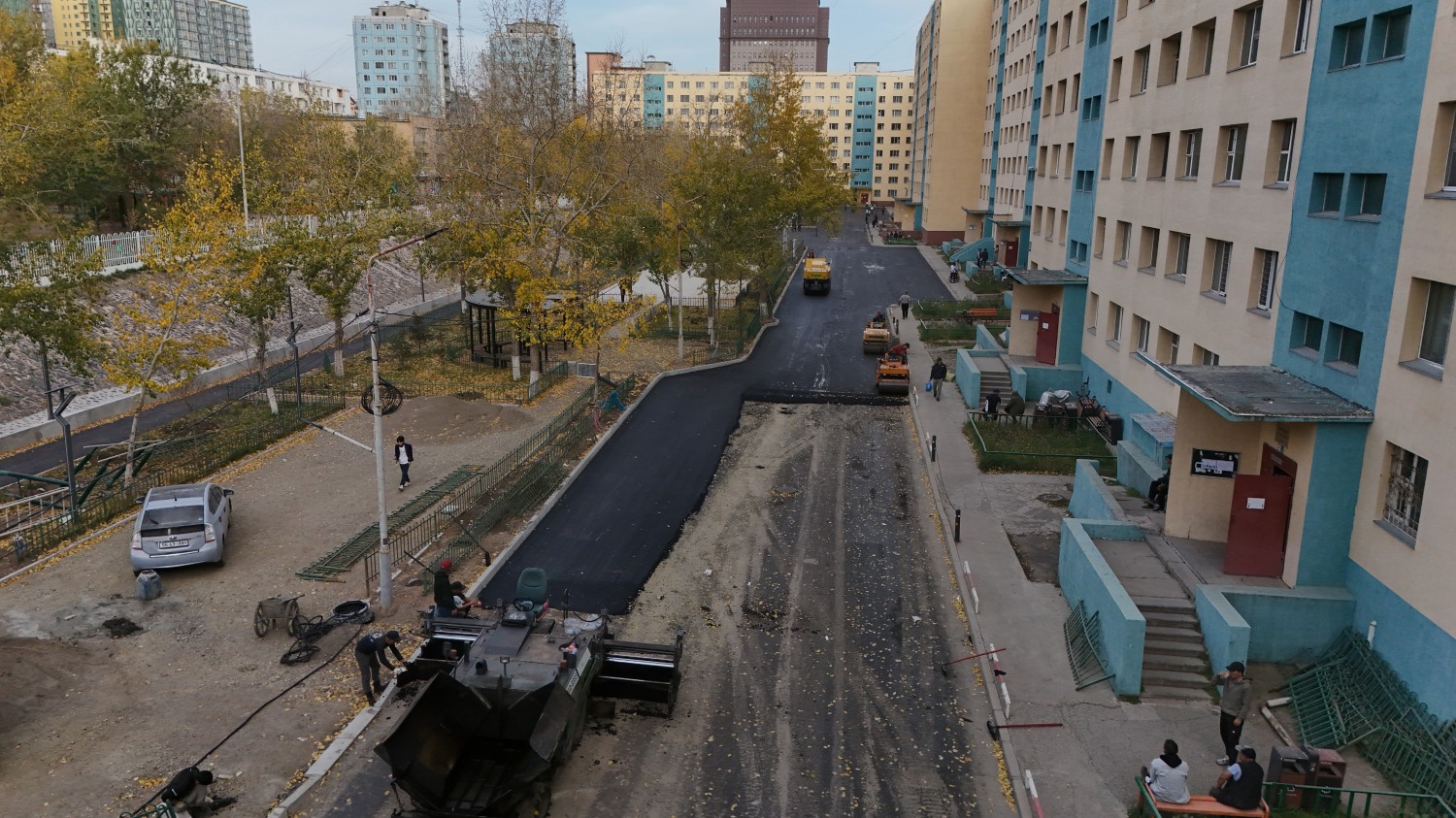 Баянгол дүүргийн 13 дугаар хорооны 2а байрнаас гуравдугаар байр хүртэлх хороолол дундах замыг шинэчлэн засварлажээ.