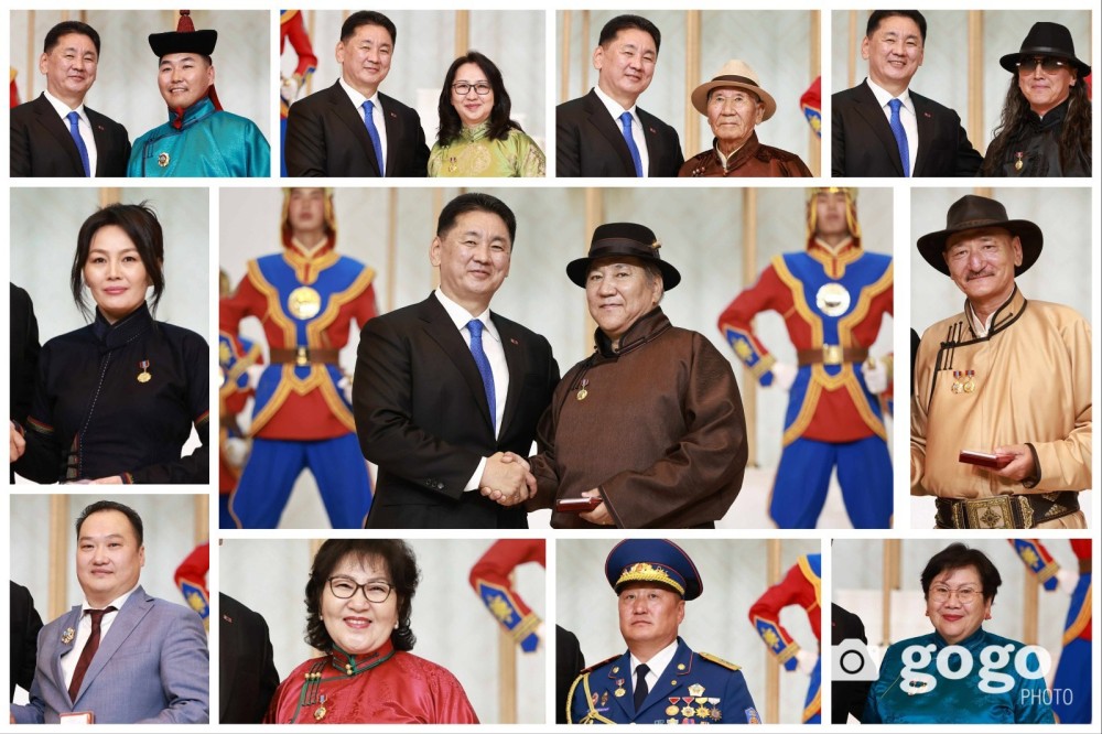 ФОТО: Үндэсний баяр наадмын өмнө төрийн дээд одон медалиар энгэрээ мялаалгасан эрхмүүд