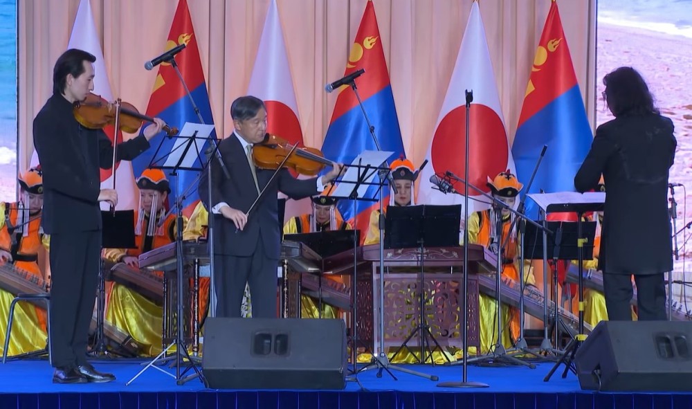Япон Улсын Цог Жавхлант Эзэн Хаан Нарүхито Чингис хаан одонт Морин хуурын найрал хөгжимтэй хамтран "Монгол аялгуу", Японы алдарт "Хамабэ но үта" аялгууг эгшиглүүллээ.