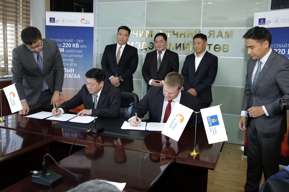 “Оюу толгой” ХХК өөрийн санхүүжилтээр барьсан Өмнөговь аймаг дахь “Оюу толгой” уурхайн цогцолбороос Монгол улс болон БНХАУ-ын хил хүртэл 96 км үргэлжилсэн цахилгаан дамжуулах агаарын шугамыг “Цахилгаан дамжуулах үндэсний сүлжээ” ТӨХК-ийн өмчлөлд шилжүүлэх, ашиглалт засвар үйлчилгээг хариуцах хоёр гол гэрээнд өчигдөр гарын үсэг зурлаа.