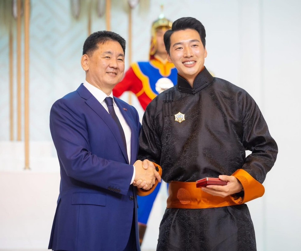 Тулгар төрийн 2234 жил, Их Монгол Улсын 819 жил, Үндэсний эрх чөлөө, тусгаар тогтнолоо сэргээн мандуулсны 114, Ардын хувьсгалын 104 жилийн ой, Үндэсний их баяр наадмыг тохиолдуулан Монгол Улсын Ерөнхийлөгч У.Хүрэлсүх төрийн дээд цол, одон, медаль гардуулж байна.