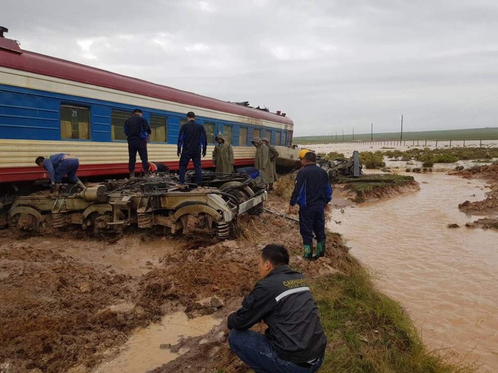 Хүчтэй үерийн улмаас төмөр зам эвдэрч 4 вагон замаасаа гарчээ