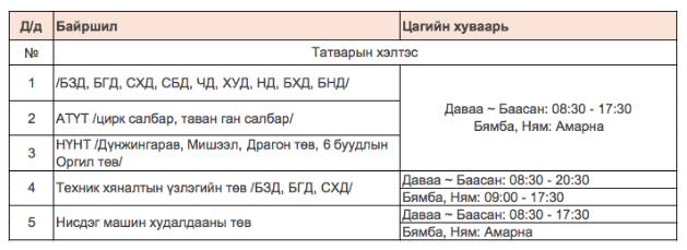 Тээврийн хэрэгслийн албан татвар, төлбөр хураах цэгүүд: