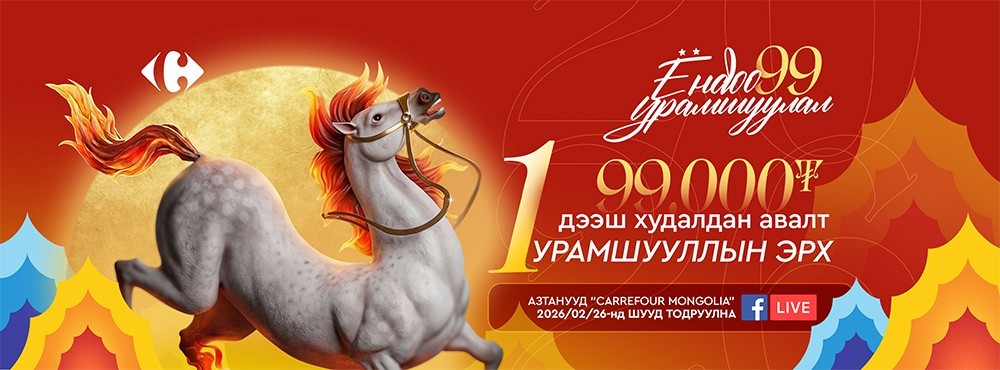 ЁНДОО99 урамшуулалт худалдаа CARREFOUR-ийн бүх салбаруудаар үргэлжилж байна