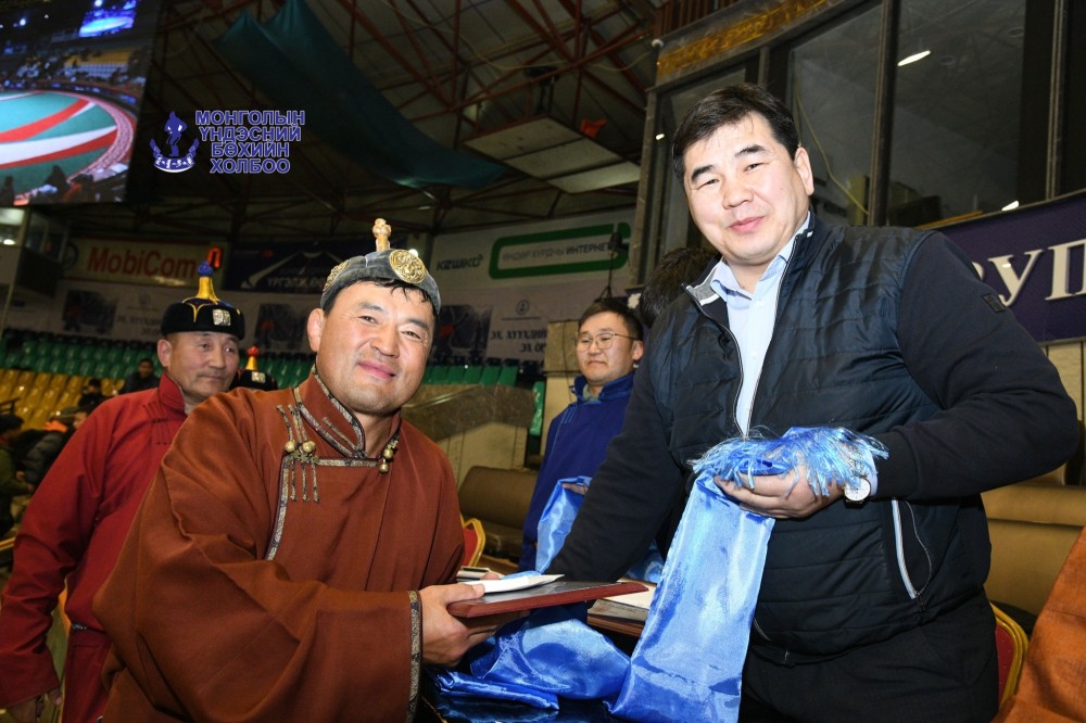 Аварга үе тэнгийн үхэр хонь жилтэнгүүдтэйгээ уулзаж, нэг өдрийн бэлтгэл болгож хөлсөө гаргая хэмээн Бөхийн өргөөндөө хүрэлцэн иржээ. Тэрбээр бөхөд хайртай түмэн олонтойгоо уулзсандаа баяртай байгаагаа илэрхийлж, Монгол түмэндээ удахгүй болох сар шинийн баярын мэндчилгээ дэвшүүлэв.