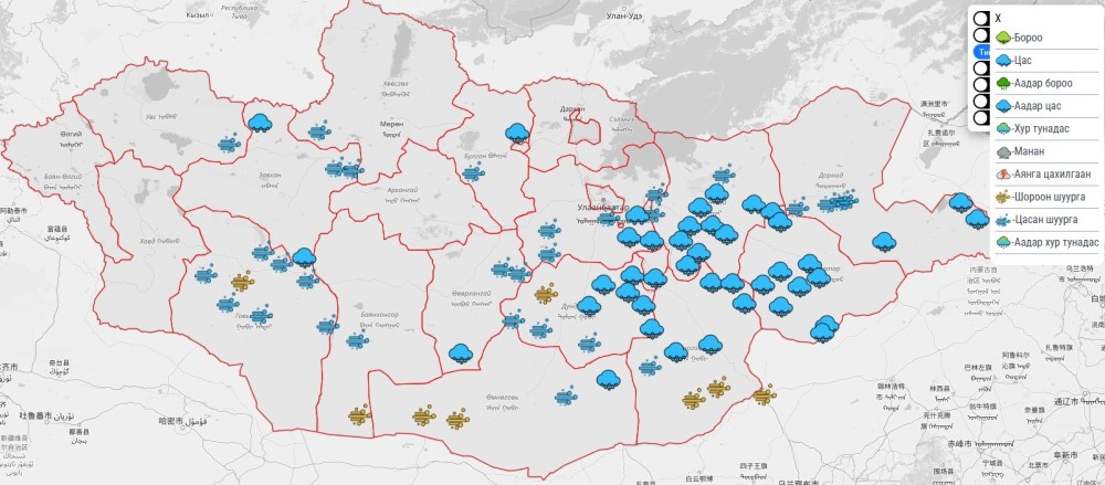 2026.02.21 өдрийн 08 цагийн байдлаар цас орж, шуурч байгаа аймаг сумдын мэдээллийг хүргэж байна.