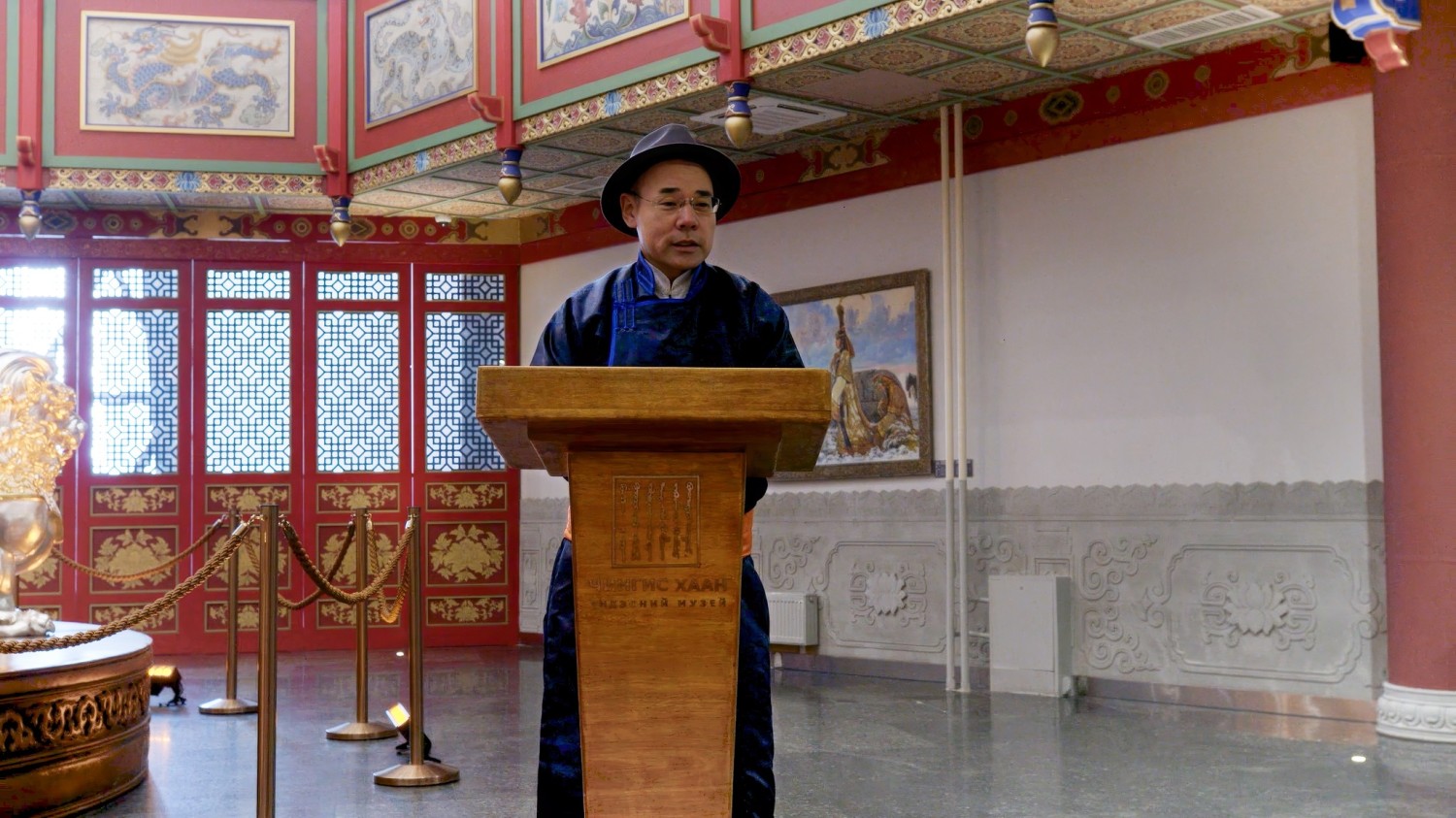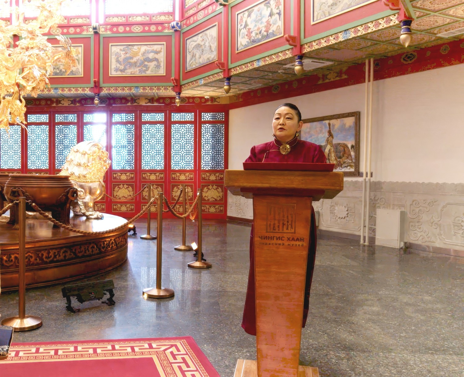 “Чингис хаан” үндэсний музейд болсон ёслолыг Ерөнхийлөгчийн Соёл, шашны бодлогын зөвлөх Б.Сэргэлэн нээж үг хэллээ. Тэрбээр монгол соёл иргэншлийг үүсгэн цогцлоож, даян дэлхийд Монголын амар амгаланг тогтоосон, эртний язгуур түүхтэй, давтагдашгүй баялаг соёлтой ард түмний бүтээсэн агуу туурвилуудын нэг нь баатарлаг тууль гэдгийг онцоллоо.