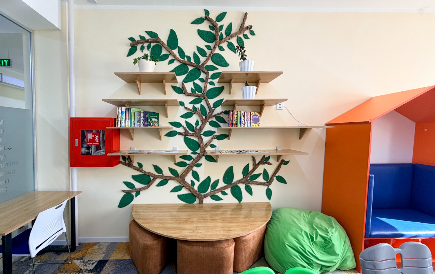 Төслийн хүрээнд номын санг хүүхдэд аюулгүй, энгийн хийцтэй, уншлагын танхим нь ил тод харагдах шилэн ханатай, сурагч бүрд нээлттэй, чөлөөтэй ашиглах боломжтой байхаар шийддэг байна.