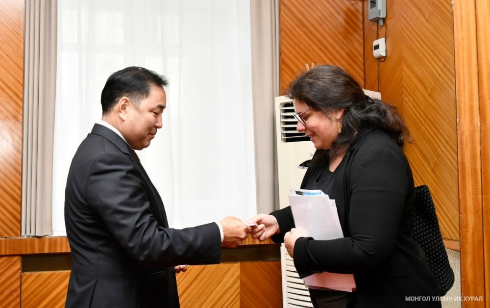 Монгол Улсын Их Хурлын дэд дарга Б.Пүрэвдорж /2026.03.02/ Францын хөгжлийн агентлагийн Бээжин дэх төлөөлөгчийн газрын бүсийн захирал А.Оберийг хүлээн авч уулзлаа. Уулзалтад Бүгд Найрамдах Франц Улсаас Монгол Улсад суугаа Онц бөгөөд Бүрэн эрхт Элчин сайд Коринн Пэрера болон албаны бусад хүмүүс байлцав.
