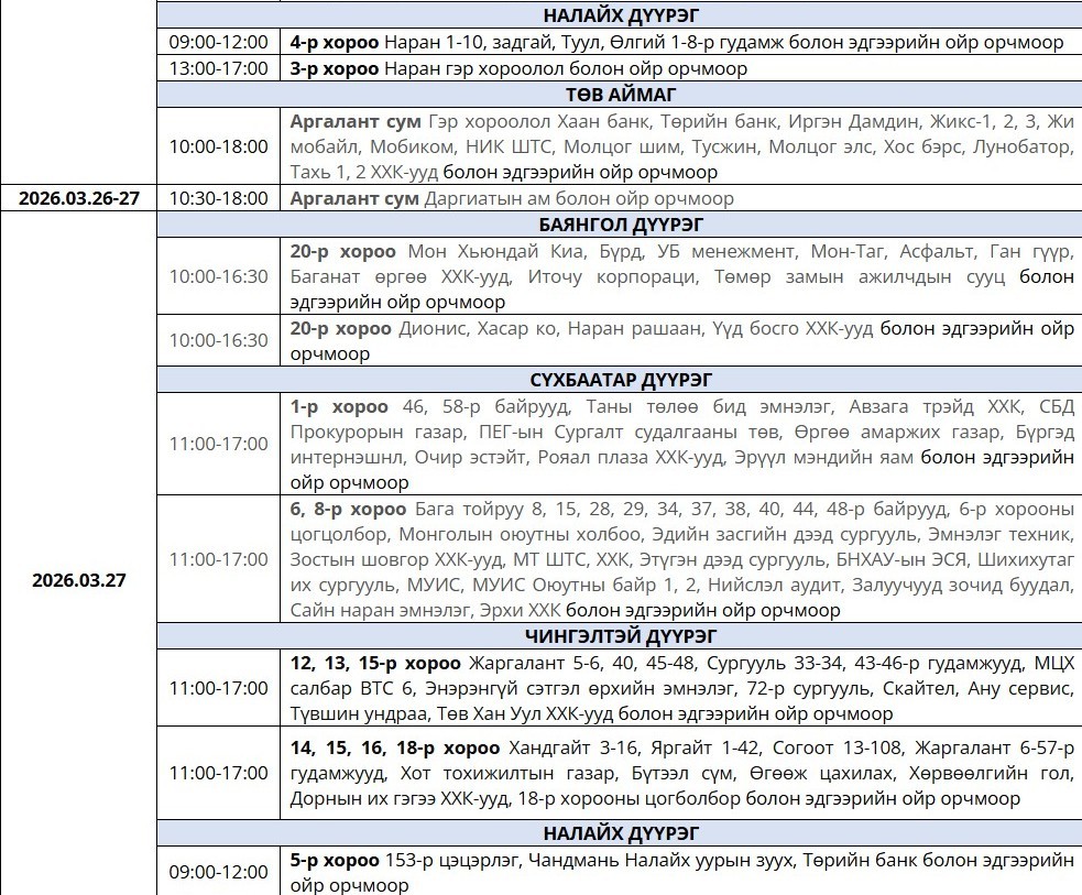 2026.03.27 Цахилгаан хязгаарлах байршлууд