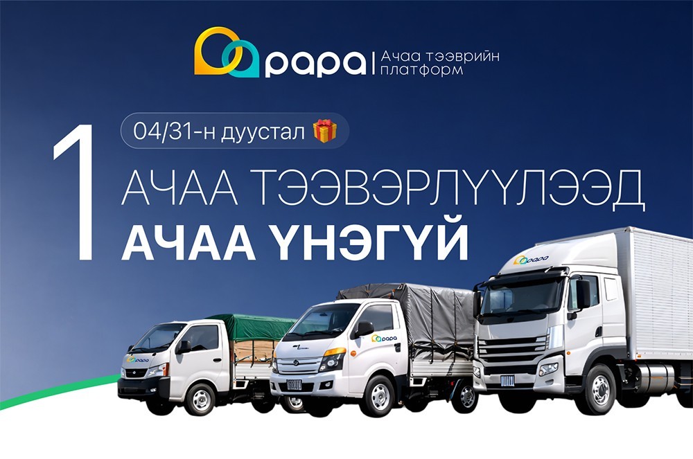 Papa Logistic платформ шинэ хэрэглэгчдэдээ зориулан 2026 оны 4-р сарын 30-г хүртэл 1+1 урамшууллыг зарлалаа.