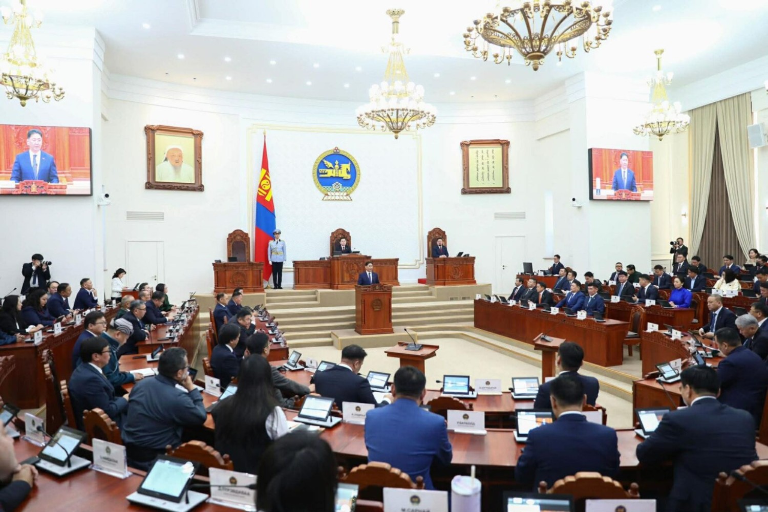 Монгол Улсын Их Хурлын 2026 оны хаврын ээлжит чуулганы өнөөдрийн (2026.03.30) үдээс өмнөх нэгдсэн хуралдаан Улсын Их Хурлын 126 гишүүний 88 нь хүрэлцэн ирснээр 10 цаг 11 минутад гишүүдийн 69.8 хувийн ирцтэйгээр эхэлсэн.