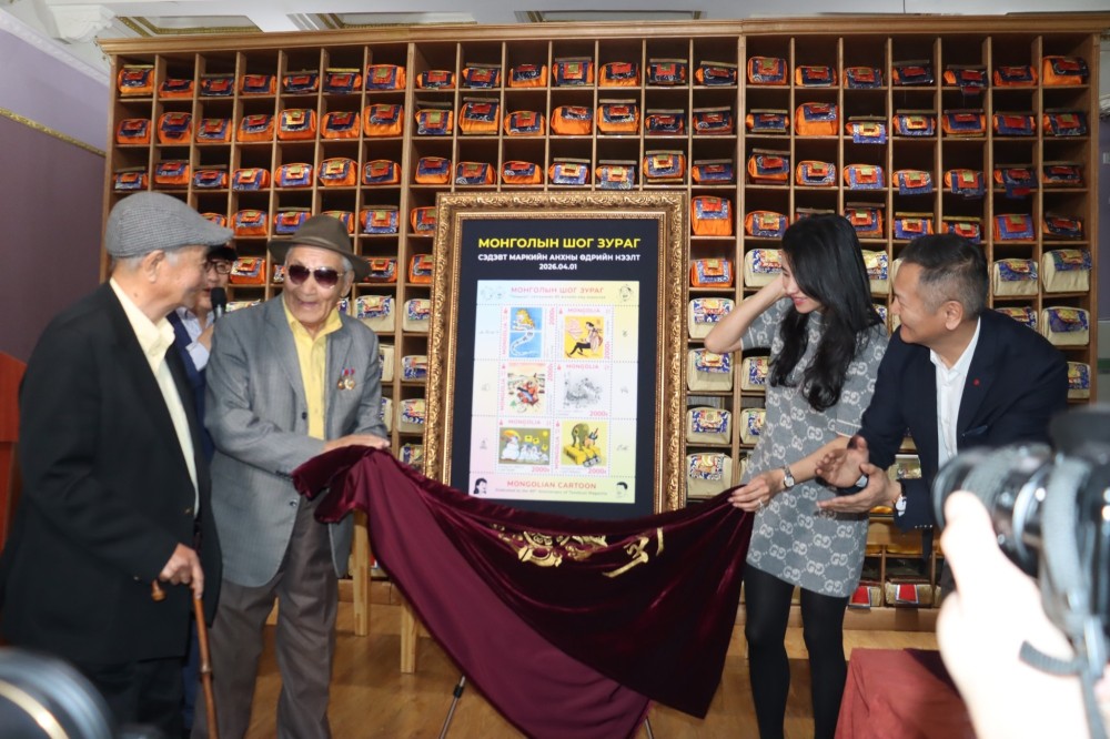 "Монголын шог зураг" маркийн нээлтийн ёслол Олон улсын Инээдмийн баярын өдрөөр Монгол Улсын Үндэсний Номын Сангийн Үнэт ховор номын музейд боллоо.