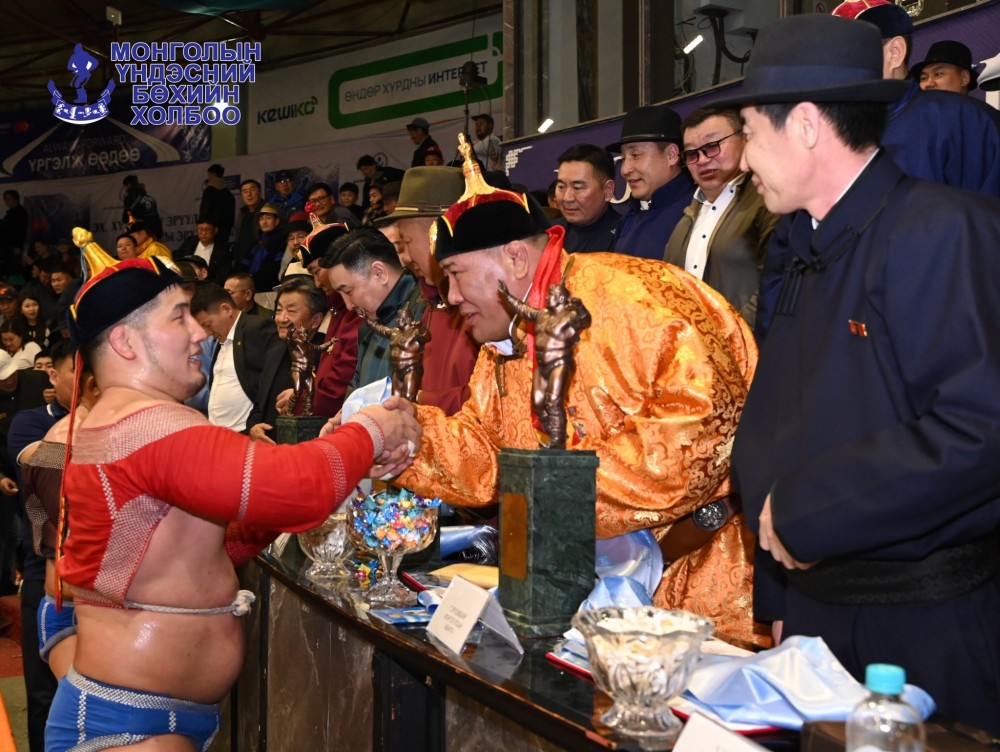 Ховд аймгийн Зэрэг сумын харьяат, улсын заан Б.Бат-Өлзий үзүүрлэв. Харин их шөвөгт дархан аварга Н.Батсуурь, улсын заан Н.Жаргалбаяр нар шалгарав.