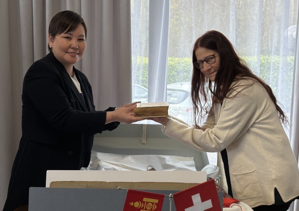 Швейцарын Холбооны Улсын Бернийн их сургуулийн номын санд хадгалагдаж байсан Монголын түүх, соёлын үнэт өвд хамаарах эртний ховор хоёр бичвэрийг Монгол Улсад буцаан шилжүүлэх ёслол Монгол Улсаас Швейцарын Холбооны Улсад суугаа Элчин сайдын яаманд болов.