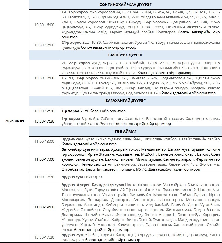 2026.04.09 Цахилгаан хязгаарлах байршлууд