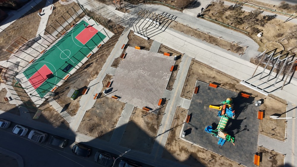 34 мянган ам метр талбайд унадаг дугуй, явган хүний зам, сагсан бөмбөгийн болон хүүхдийн тоглоомын талбай барьжээ. Бялдаржуулах тоноглол, саравч, сандал, хогийн сав, гэрэлтүүлэг байрлуулан, ногоон байгууламжийг нэмэгдүүлсэн юм.