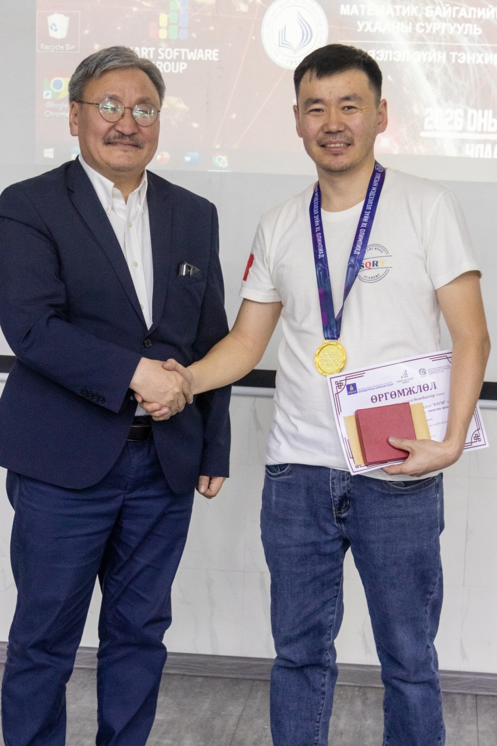 - Алтан медалийг Ганзориг Эрхэм /Нийслэлийн Баянзүрх д дүүргийн ЕБ-ын Оюунлаг сургуулийн 12 дугаар ангийн сурагч/