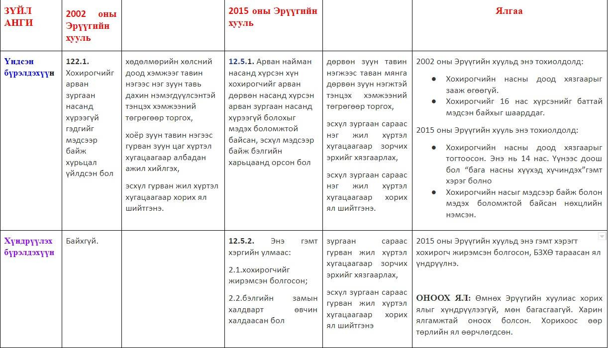 Иймэрхүү ялгаа бийг анзаарч, харцгаахыг хүсч байна. Эрүүгийн хуулийг энд дарж харна уу. Дурдаагүй зүйлс бий шүү.