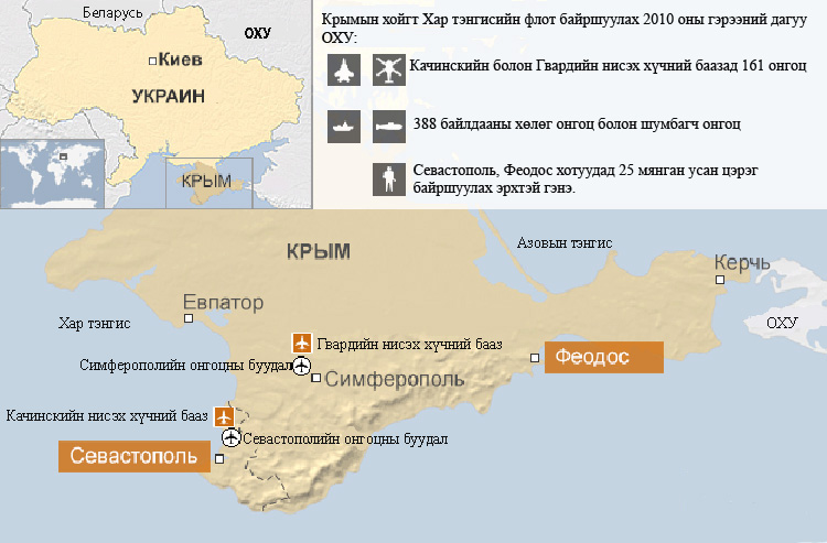 Хүн амын ихэнхийг оросууд эзэлдэг Крымийн хойг улс төрийн хямралын дараагийн “халуун цэг” болов. Хар тэнгисийн хойд эрэгт орших, Украинд харьяалагдах Крымын хойгт стратегийн чухал ач холбогдолтой Оросын цэргийн бааз байдаг юм.