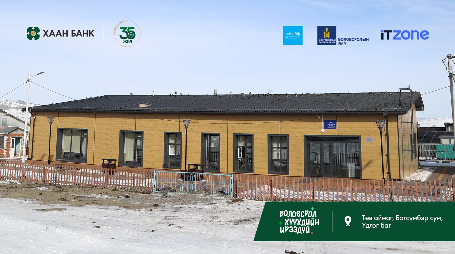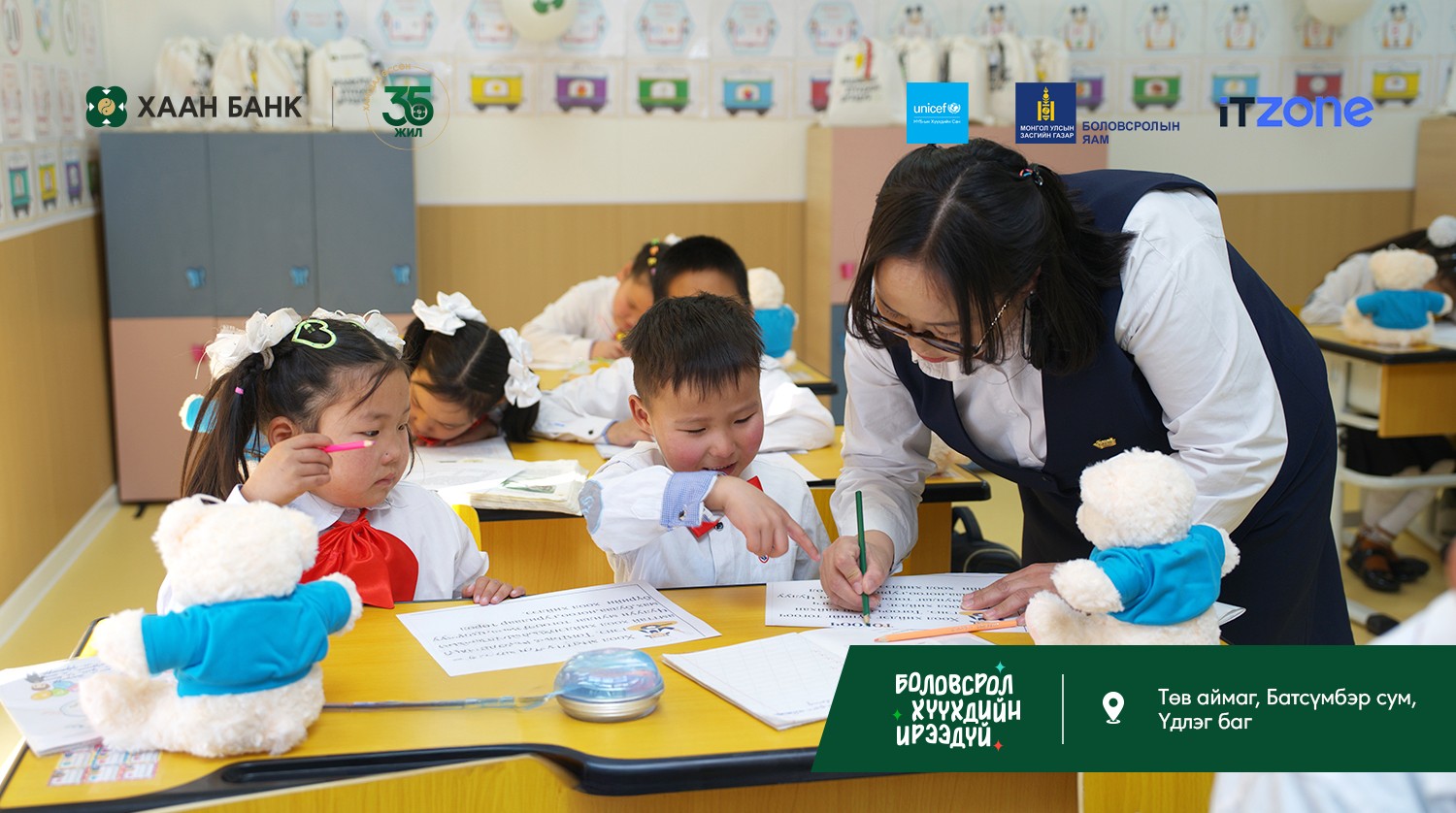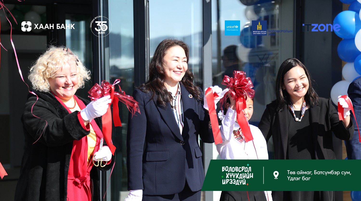 Монголын алслагдсан багт амьдарч буй хүүхдүүдэд гэр бүлийнхээ дэргэд, тэгш, хүртээмжтэй боловсрол эзэмших боломжийг бүрдүүлэх зорилготой “Багийн бага сургууль” төслийн хүрээнд ХААН Банкны санхүүжилтээр баригдсан дөрөв дэх сургууль Төв аймгийн Батсүмбэр сумын Үдлэг багт ашиглалтад орж, өнөөдөр нээлтээ хийлээ.