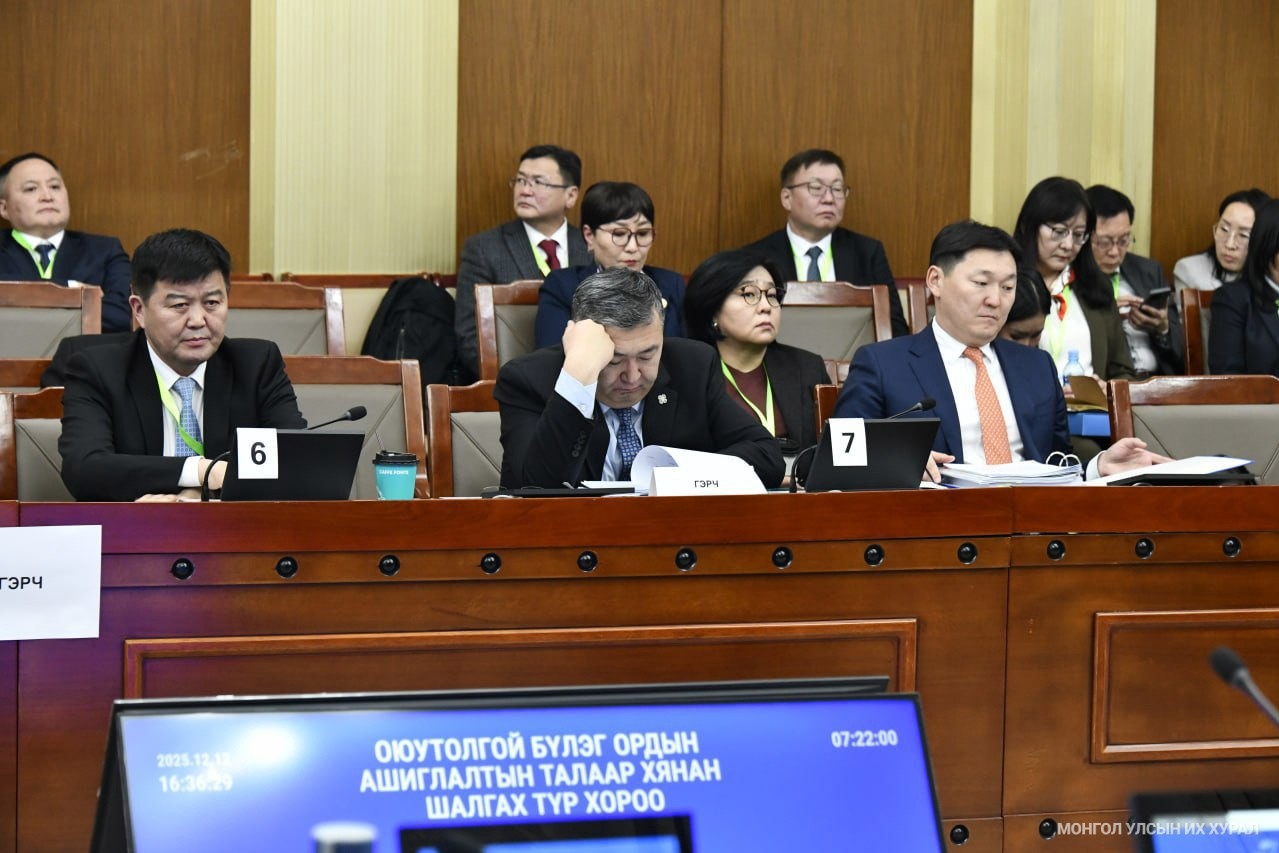 Оюу толгой бүлэг ордын ашиглалтад Монгол Улсын эрх ашгийг хангуулах, хүртэх өгөөжийг нэмэгдүүлэхтэй холбоотой баримт бичиг, үйл ажиллагаанд хяналт шалгалт хийх үүрэг бүхий хянан шалгах түр хорооноос нотлох баримтыг шинжлэн судлах сонсголыг 2025 оны 12 дугаар сарын 08-12-ны өдрүүдэд гурван өдрийн турш Төрийн ордны “Их Эзэн Чингис хаан” танхимд зохион байгуулж, өчигдөр (2025.12.12) өндөрлөлөө.