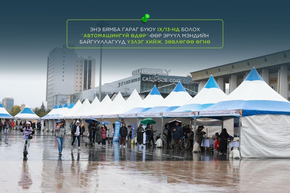Энэ бямба гарагт “Автомашингүй өдөр-2025” арга хэмжээг “Эрсдэлгүй-эрүүл орчныг хамтдаа” уриан дор зохион байгуулна. Автомашингүй өдрөөр соёл, урлагийн тоглолт, спортын арга хэмжээ зохион байгуулагдана. Мөн НЭМГ-ын харьяа байгууллагууд, хувийн хэвшлийн эрүүл мэндийн байгууллагууд амны хөндийн эрүүл мэндийн үзлэг, чихрийн шижингийн илрүүлэг, цусны даралт ихсэх өвчний зөвлөгөө, сүрьеэгийн илрүүлэг, дасгал хөдөлгөөний зөвлөгөө, эрүүл хооллолтын зөвлөмж мэдээлэл өгөх юм.