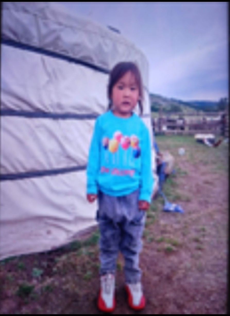 Алга болсон хүүхэд нь цайвар шар царайтай, толгойдоо 10см орчим урттай, хоёр сүлжсэн шаргал өнгийн үстэй, 80см орчим өндөртэй, 18 кг орчим жинтэй, алга болох үедээ хөх өнгийн цамц, хар өнгийн өмд, зураг дээрээ харагдаж байгаачлан улаан оруулгатай цагаан өнгийн гуталтай явсан.