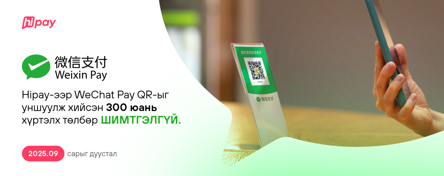 Энэхүү хамтын ажиллагааны хүрээнд 2025 оны 9 дүгээр сарыг дуустал Hipay-ээр WeChat Pay QR уншуулж хийсэн 300 юань хүртэлх төлбөр шимтгэлгүй байна.