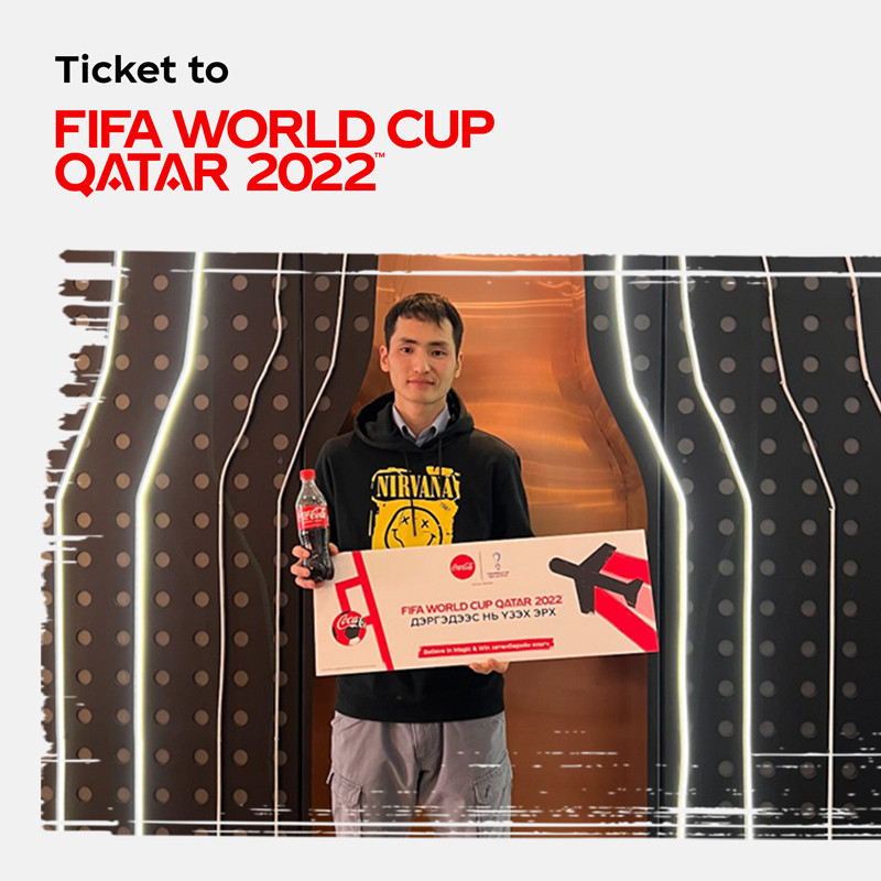 “М-Си-Эс Кока-Кола” компаниас зарласан “iCoke believe in Magic&Win” хөтөлбөрийн хүрээнд Катар улсаар аялж, Хөлбөмбөгийн ДАШТ-ийн шөвгийн 16-н багийн тоглолтыг дэргэдээс нь үзэх эрхтэй гурван азтан тодорч, “Эрхийн Бичиг”-ээ гардан авлаа.