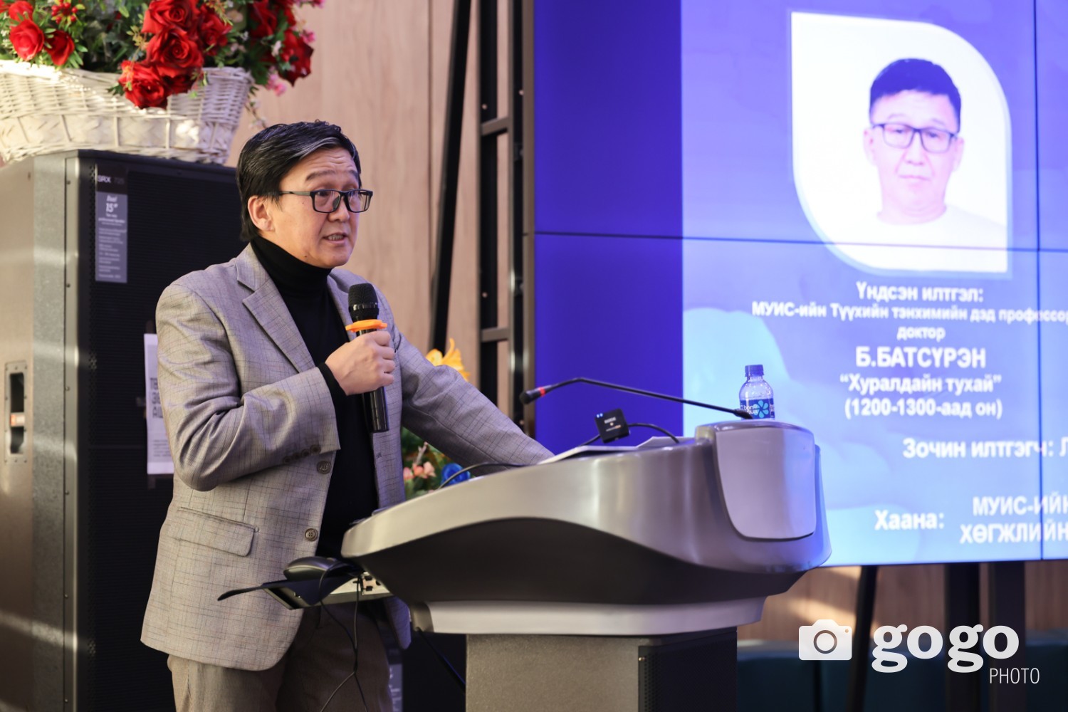 Хурлын бас нэг үндсэн илтгэлийг МУИС-ийн Археологи, Антропологи, Хүн амзүйн тэнхимийн эрхлэгч, доктор У.Эрдэнэбат “Дундад зууны монголчууд перс номын чимэглэл зурагт” сэдвээр тавьсан юм.