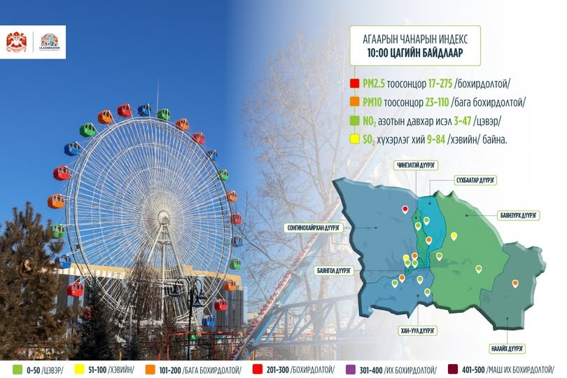 Агаарын чанарын индекс 10:00 цагийн байдлаар: