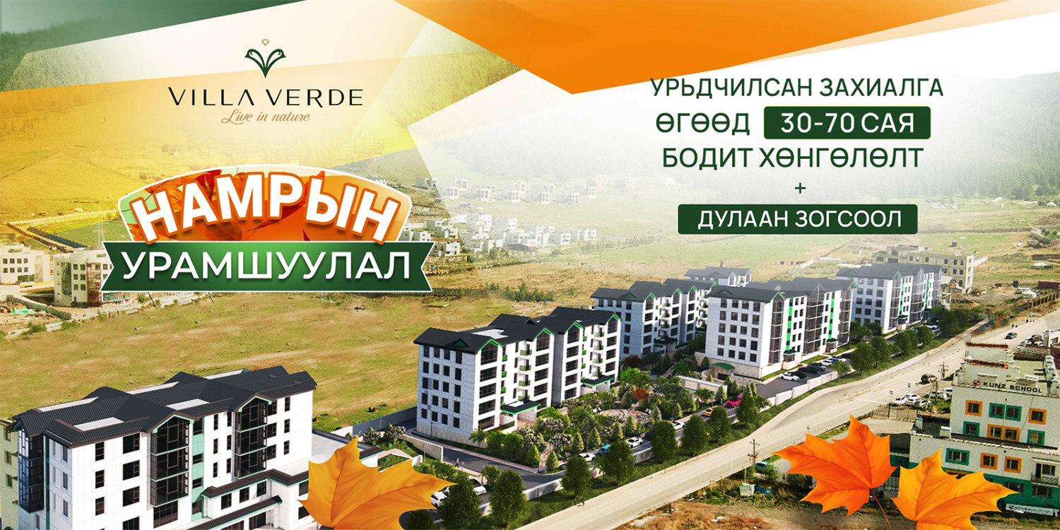 Өнөөгийн хотжилт, хэт төвлөрөл, агаарын бохирдол зэрэг нь та биднийг Амьд байгалиас улам бүр холдуулсаар байна. Хүн бол байгалийн нэгэн хэсэг, тэр ч үүднээс таны амьдарч буй гэр, орчин нь “Байгаль-Хүн” хоорондын харилцааг холбох гүүр юм. Мөн таны амьдралын хэв маяг, эрүүл мэнд, тав тух, таны бүхий л хэрэгцээг хангасан үйлчилгээг орон сууцнаасаа авах бөгөөд жилийн дөрвөн улиралд Эрүүл, Ногоон орчинд байгалийн сайхныг гэрээсээ тольдон амьдрах тав тухыг Villa Verde /ногоон хотхон/ танд санал болгож байна.