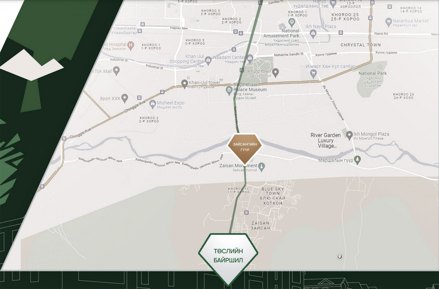 Бидний танилцуулж буй “VILLA VERDE” буюу “Ногоон байшин” хэмээх энэхүү төсөл нь Хан-Уул дүүргийн нутаг дэвсгэрт Богдхан уулын Ар Зайсангийн аманд (хотын төв цэгээс 5,2 км зайд) Ойн захаас 400 метр байгалийн үзэсгэлэн цогцолсон 2 га талбайд 6 блок, ердөө 108 айлд зориулж, ая тухтай амьдрах нөхцөлийг бүрдүүлэн ажиллаж байна.