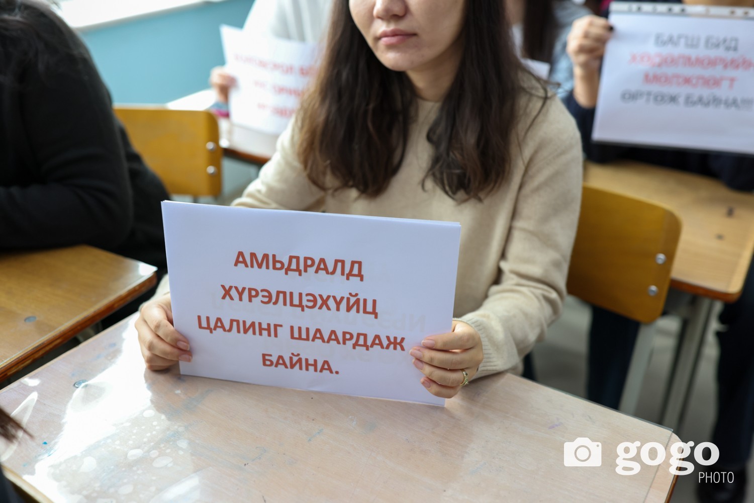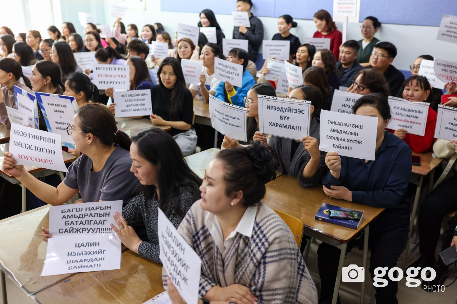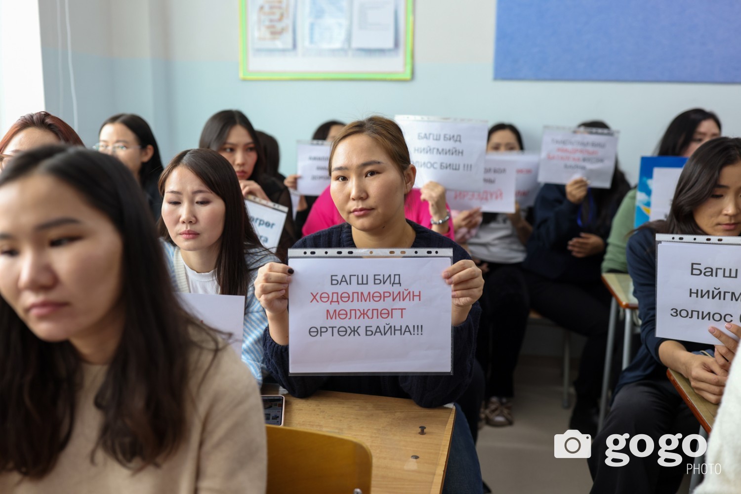 Иймд хуулийн дагуу ажил хаялтыг зохион байгуулах хэсгийг таван бүрэлдэхүүнтэй буюу Үйлдвэрчний эвлэлийн тэргүүлэгч 3, бага болоод дундын нийгмийн ажилтан гэсэн бүрэлдэхүүнтэй явуулж байна. Багш нар цалингаа нэмэгдүүлэхийн тулд тууштай тэмцэх болно" гэв.