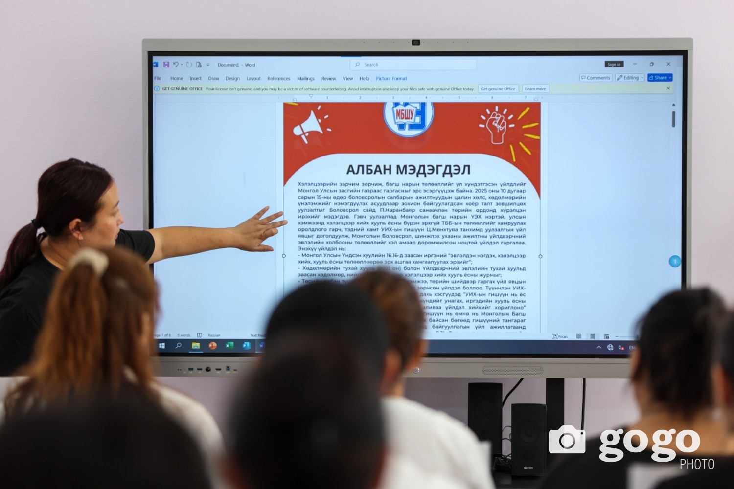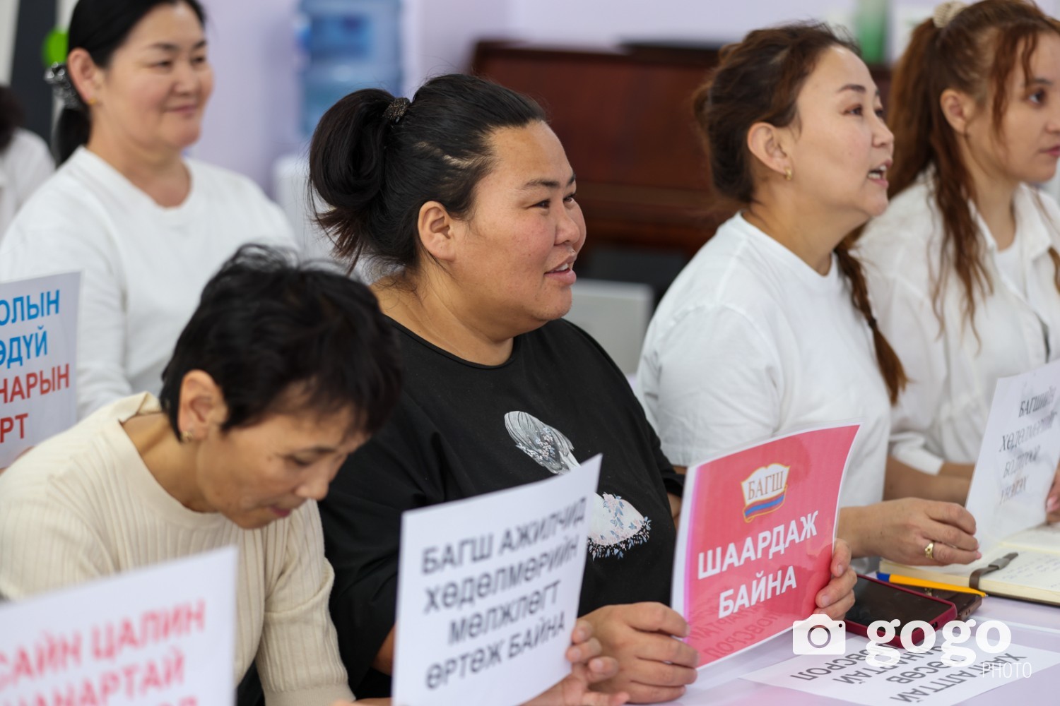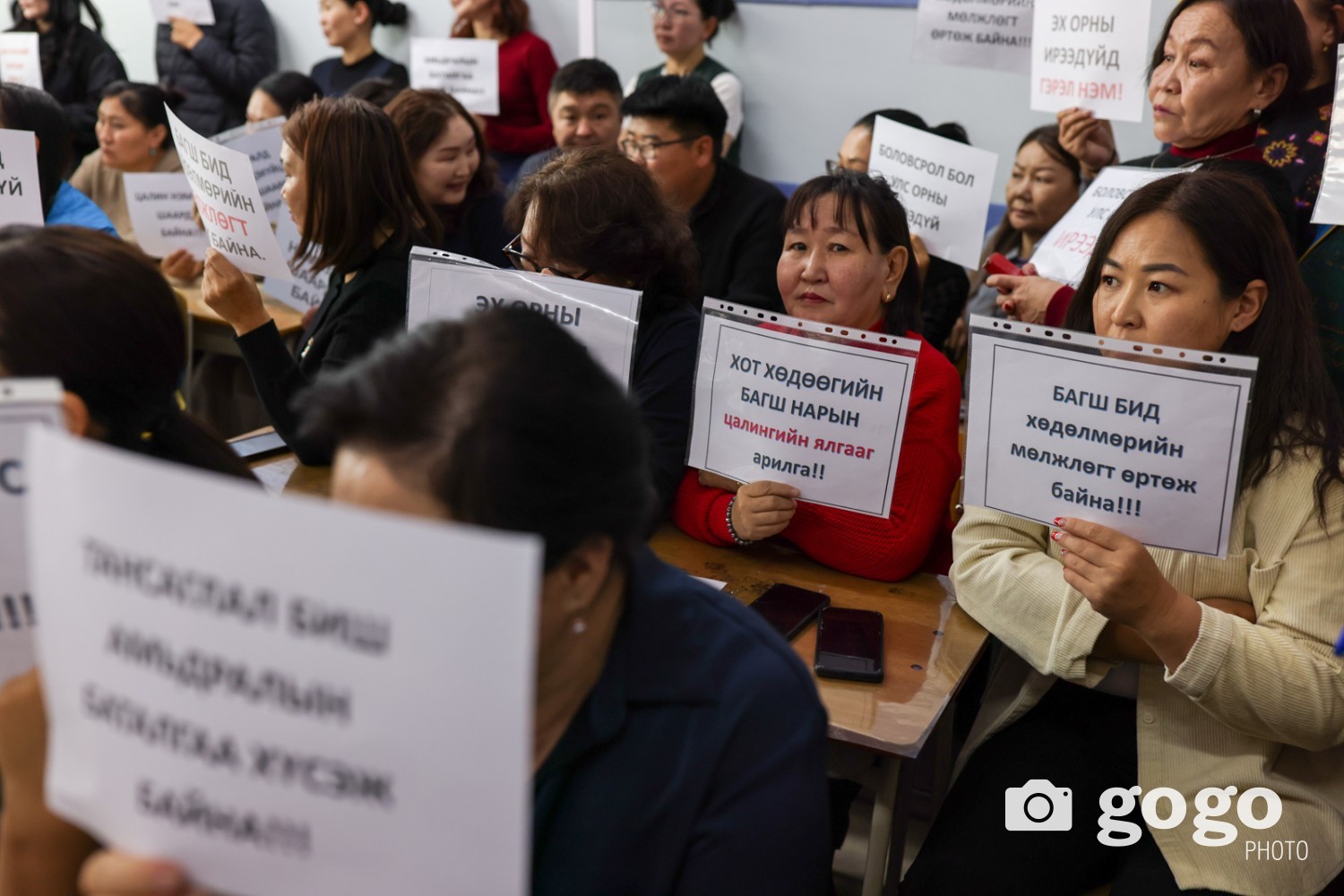 Иймд хуулийн дагуу ажил хаялтыг зохион байгуулах хэсгийг таван бүрэлдэхүүнтэй буюу Үйлдвэрчний эвлэлийн тэргүүлэгч 3, бага болоод дундын нийгмийн ажилтан гэсэн бүрэлдэхүүнтэй явуулж байна. Багш нар цалингаа нэмэгдүүлэхийн тулд тууштай тэмцэх болно" гэв.