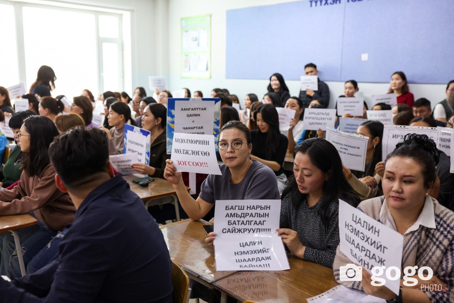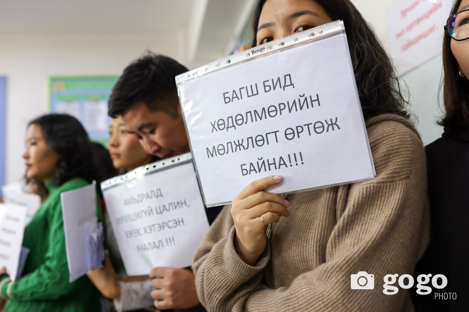 Монголын багш нарын төлөөлөл цалингаа нэмүүлэхийг шаардаж есдүгээр сарын 24-нд төв талбайд жагссан. Тэд тус жагсаалыг зохион байгуулснаар үр дүн гарахгүй бол ажил хаялт зарлахаа мэдэгдэж байсан юм.