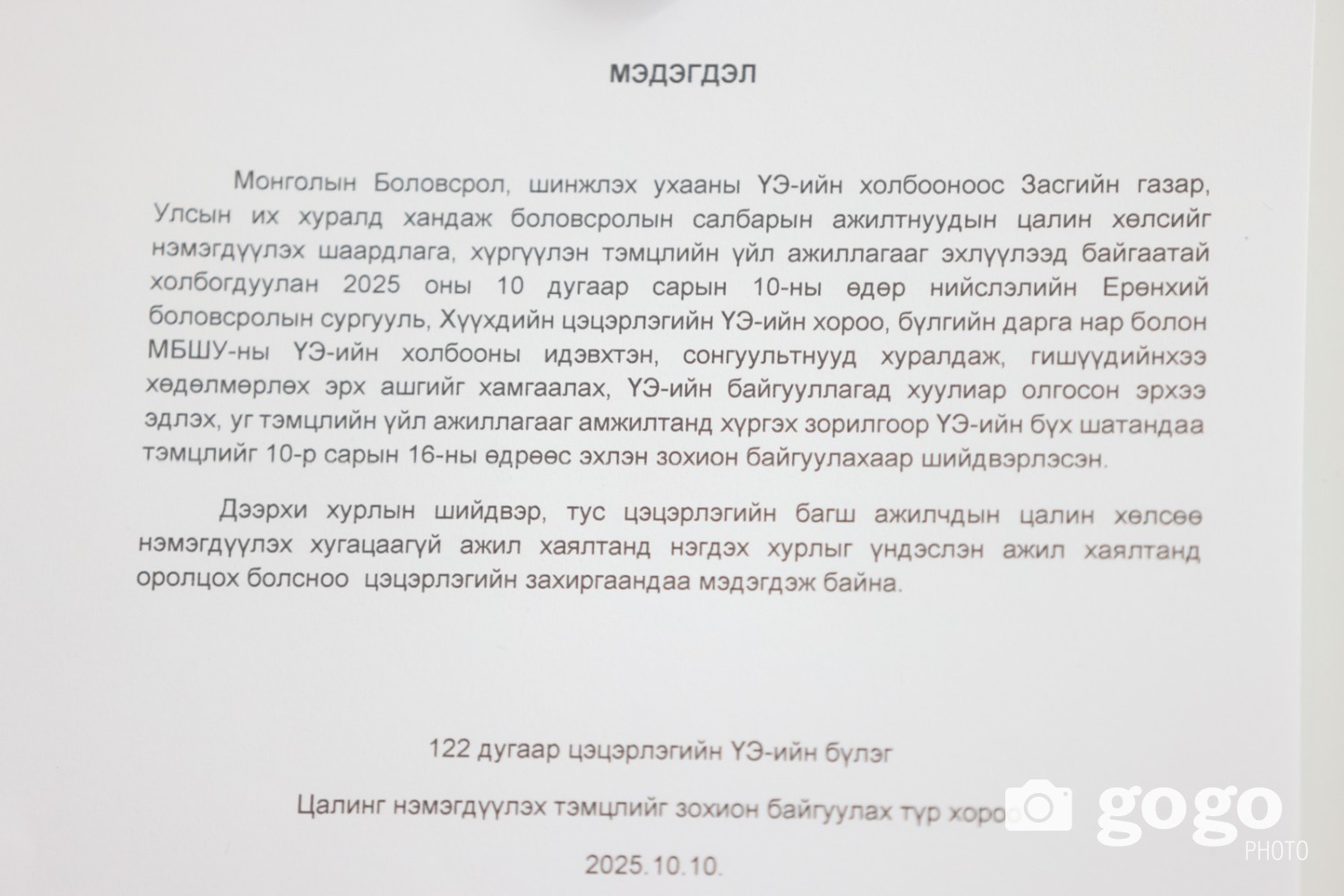 Тэгвэл өнөөдрөөс буюу /2025.10.16/-ны 08.00 цагаас эхлэн улс орон даяар боловсролын байгууллагын ажилтнуудын цалин хөлсийг нэмэгдүүлэх шаардлагын дагуу хугацаагүй ажил хаялаа.