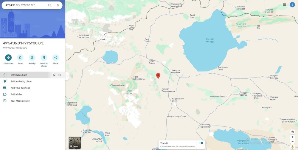 - Увс аймгийн Түргэн сумын төвөөс зүүн урд зүгт 25км