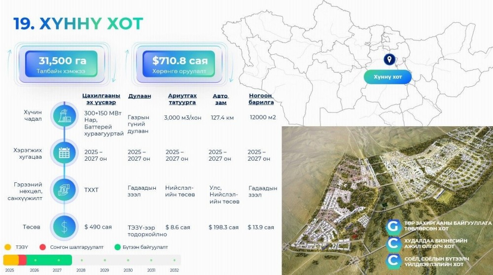 Тус хотод 150 мянган хүн оршин суух бөгөөд 80 мянган ажлын байр бий болно гэж тооцоолж буй. Мөн их, дээд сургууль, оюутны хотхон, төр захиргаа болон тээвэр логистикийн нэгдсэн цогцолбор байгуулж, эдийн засгийн чөлөөт бүс байхаар төлөвлөж байна.