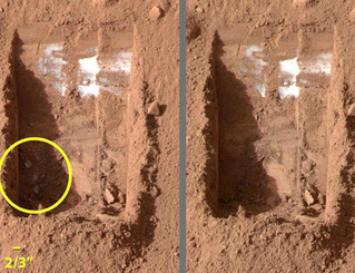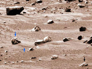 Өнгөрсөн оны арваннэгдүгээр сард "Spirit" робот дэлхий рүү бас нэгэн сонирхолтой зураг илгээжээ. Элсэнд гацсан роботын дугуй хөрсийг самардан ямар нэг тэгш өнцөгт биетийг ил гаргасан байна. Тэр нь тоосго, эсвэл чулуужсан зүсмэл модтой төстэй аж. Харин түүний цаахан талд шавар ваарны хэлтэрхийтэй тун ч адилхан зүйл элснээс цухуйсан харагдана.