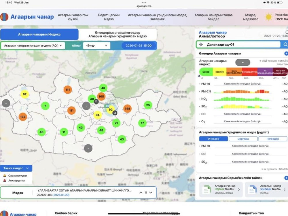 Монгол Улсын нийслэл, 21 аймгийн төвийн агаарын чанарын мэдээллийн ил тод байдал, олон нийтэд хүртээмжтэй байдлыг шинэ шатанд гаргах agaar.gov.mn нэгдсэн платформыг албан ёсоор нээлээ.